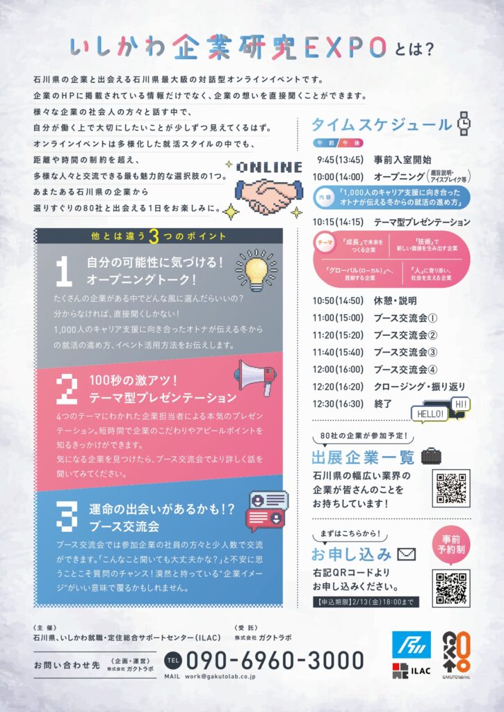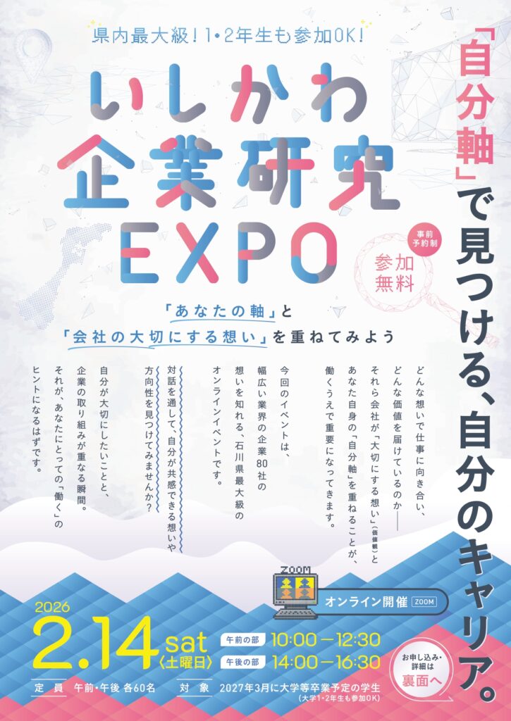 2月14日(土)にオンラインにて開催される「いしかわ企業研究EXPO 午前の部」に出展します!
