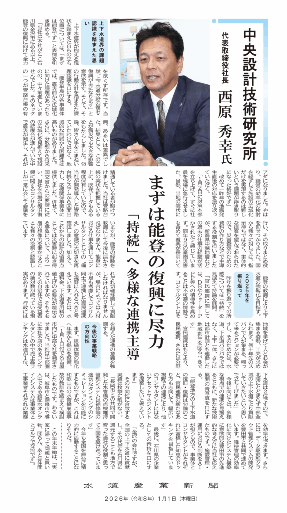 水道産業新聞 令和8年1月1日 第5886号 掲載(14面)